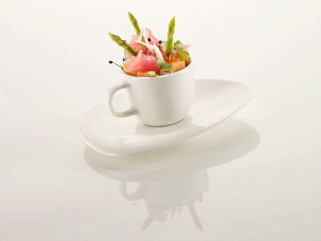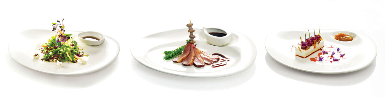 Von der Natur inspirierte, weich geschwungene und asymmetrische Formen prägen das Service Nabur. Strahlendes warmes Weiß in Verbindung mit individueller Ästhetik lässt kulinarische Kreationen wunderbar zur Geltung kommen. Zugleich werden alle Anforderungen an Funktionalität wie Stapelbarkeit, Schlagfestigkeit und vielseitige Kombinierbarkeit erfüllt. Weich geschwungene asymmetrische Schalen und Gießer in verschiedenen Größen lassen sich mit allen Tellern reizvoll kombinieren. Ein Partyteller, der alle Anforderungen von Stehempfängen und Cocktailpartys erfüllt: Er ist gut zu greifen und liegt leicht in der Hand. Jedes Stielglas hängt sicher in einem vertieften Loch – ohne den Bewegungsdrang des Partygängers einzuschränken. Auch als asymmetrisch weich geschwungene Freiform ist der Partyteller perfekt stapelbar und somit funktional bis ins Detail!
