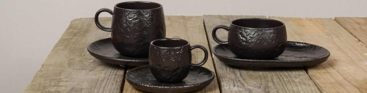 ROKS greift den aktuellen Trend zu rustikaler Handwerklichkeit in dunklen Glasuren auf.