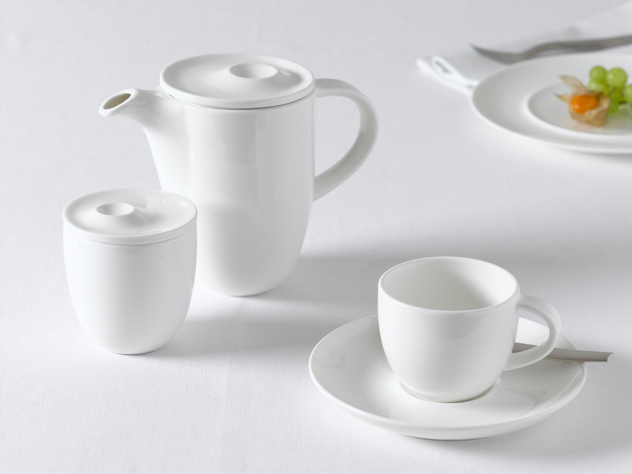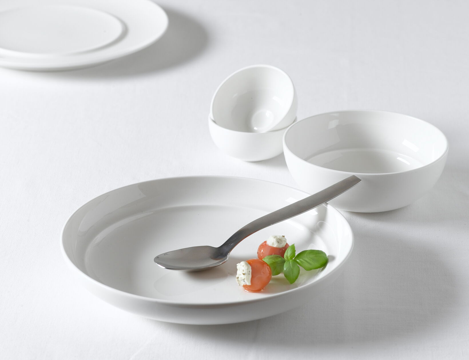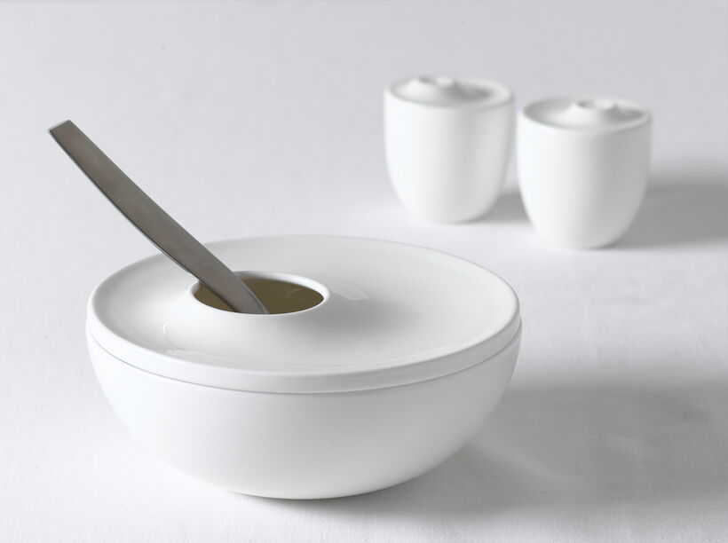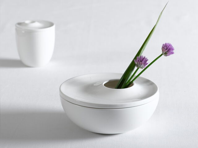 The service Gong with its modern unique look is inspired by the simplicity of nature: It resembles the ripple of the water surface when a stone is thrown into a pond. Gong expresses itself through a consistent design based on a repeated element, the "Circle within the circle". This element is used as a link between more than 50 hotel range items. It gives the service a strong identity, and works as a basic functional element as well as a decorative one. The plates have an elevated inner ring for presenting food within an aesthetic frame. For all hollowware the circle element on the lids is used as an asymmetric element in a clear differentiation to the rotated plates with their central elements. The saucer carries the "circle" element for functional value: You position the cup onto the "Circle". The cups also show the "circle" inside - a new feature in the market.