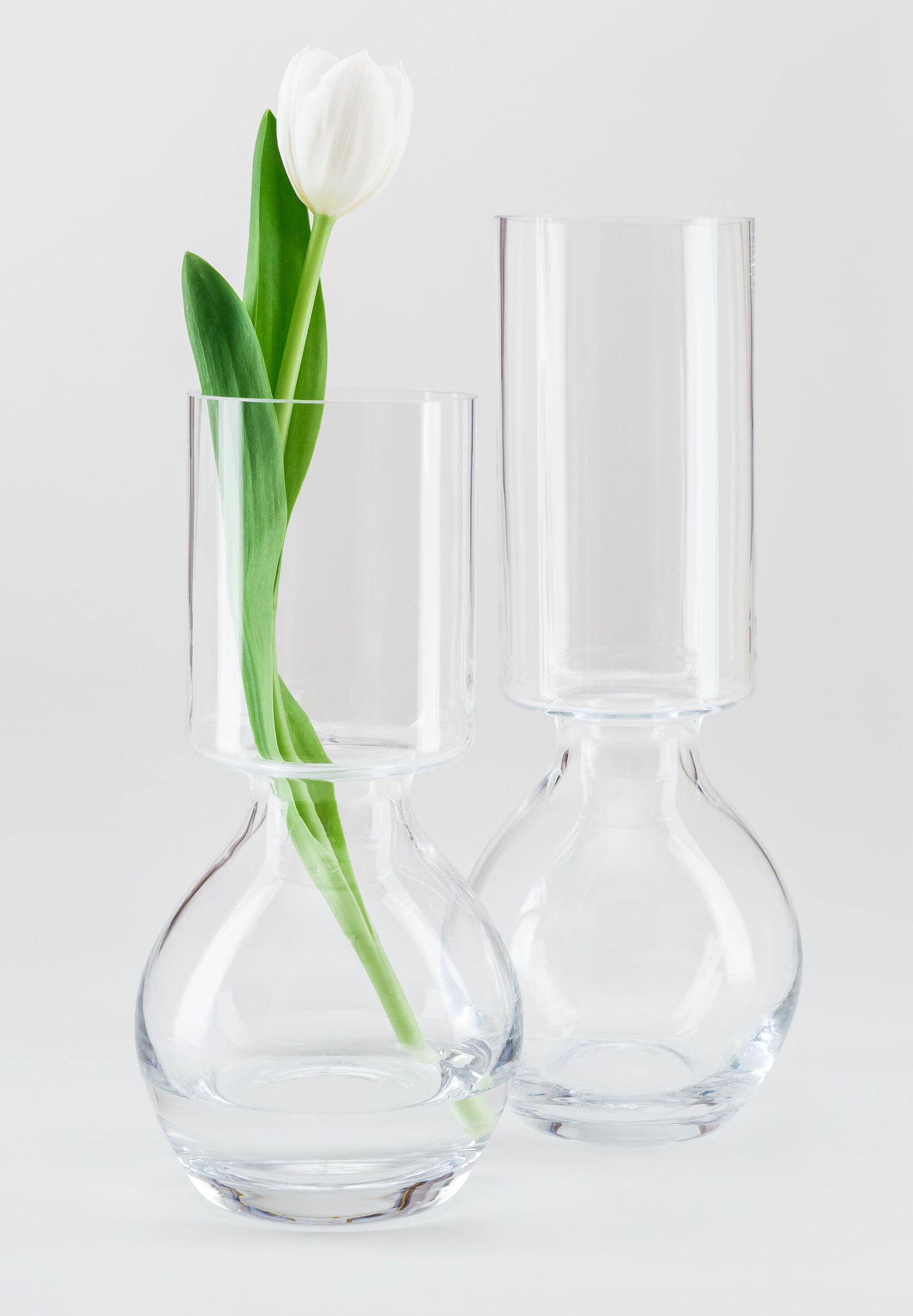 Cylinder and sphere combine to give these vases a formal tension and provide support for individual long-stemmed flowers.