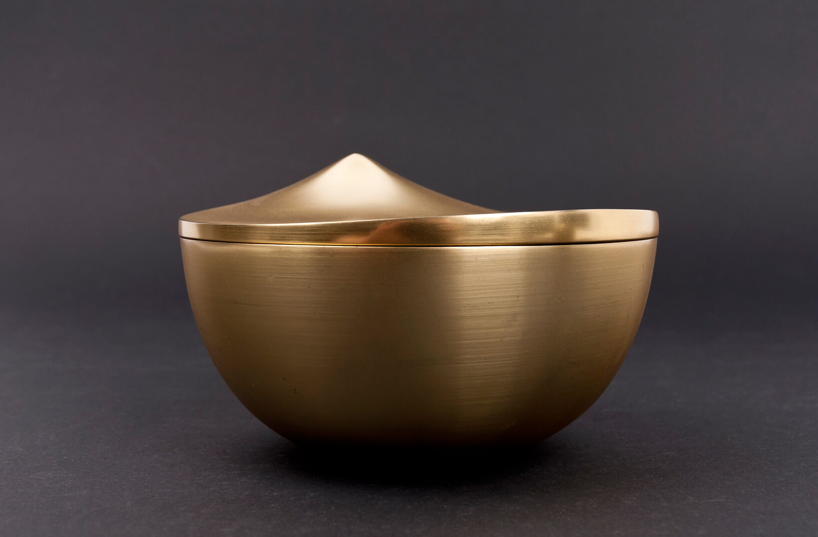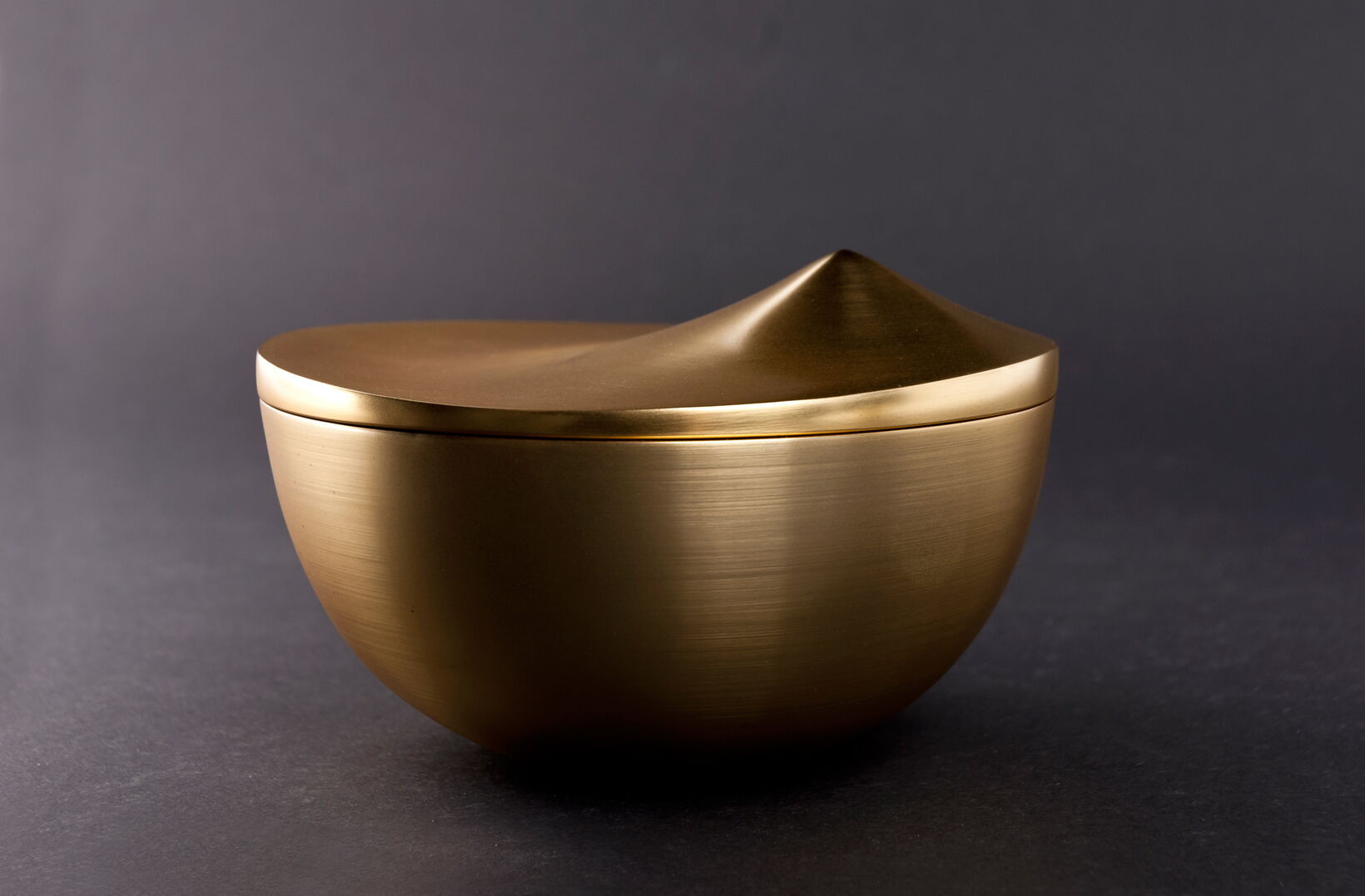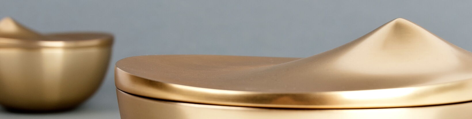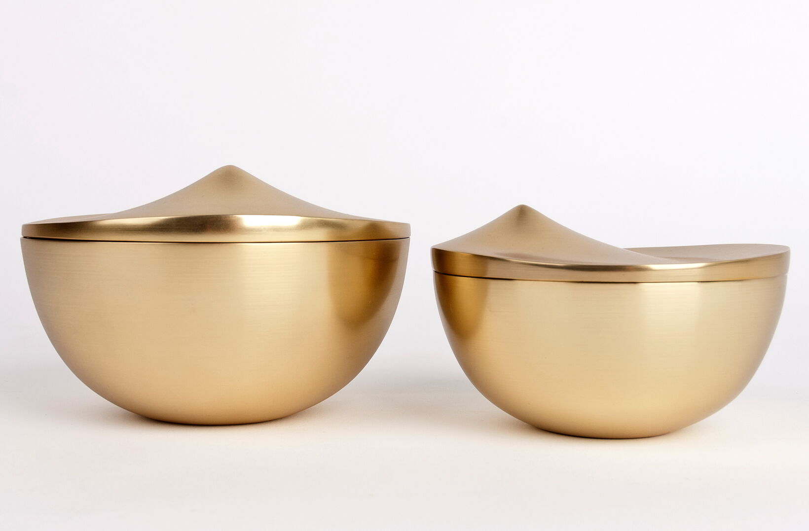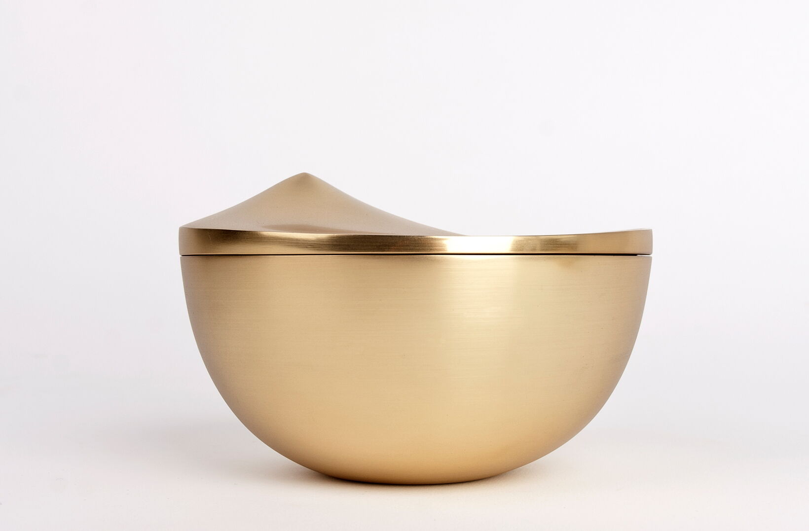 Hide sweets, jewellery or keys in this bonbonniere out of aluminium with brushed brass coating.