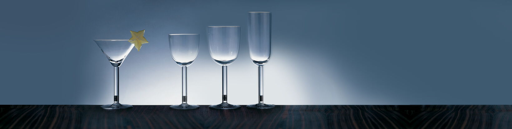 The unique feature of the Ring glass range is the stainless steel ring around each stem. This design idea is protected by a patent.