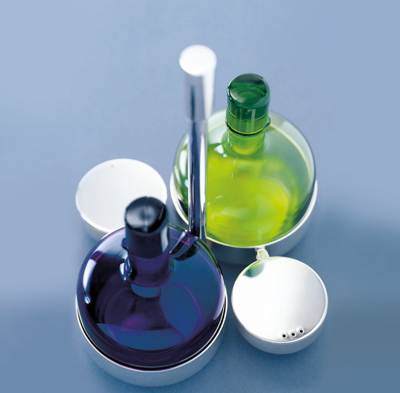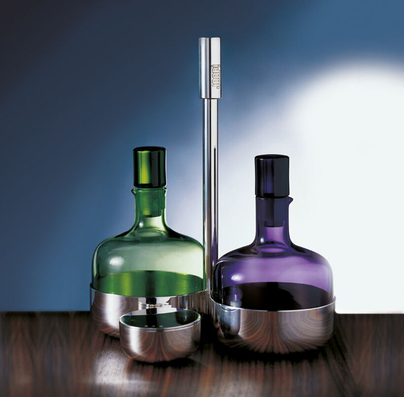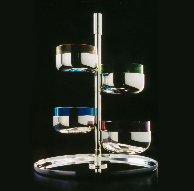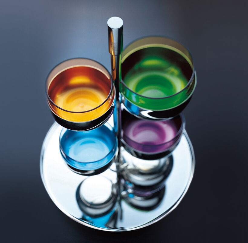 The unusual combination of coloured Murano glass and sliver holders makes for an optical feast and reinforces the exclusive character of these simple, timeless shapes.